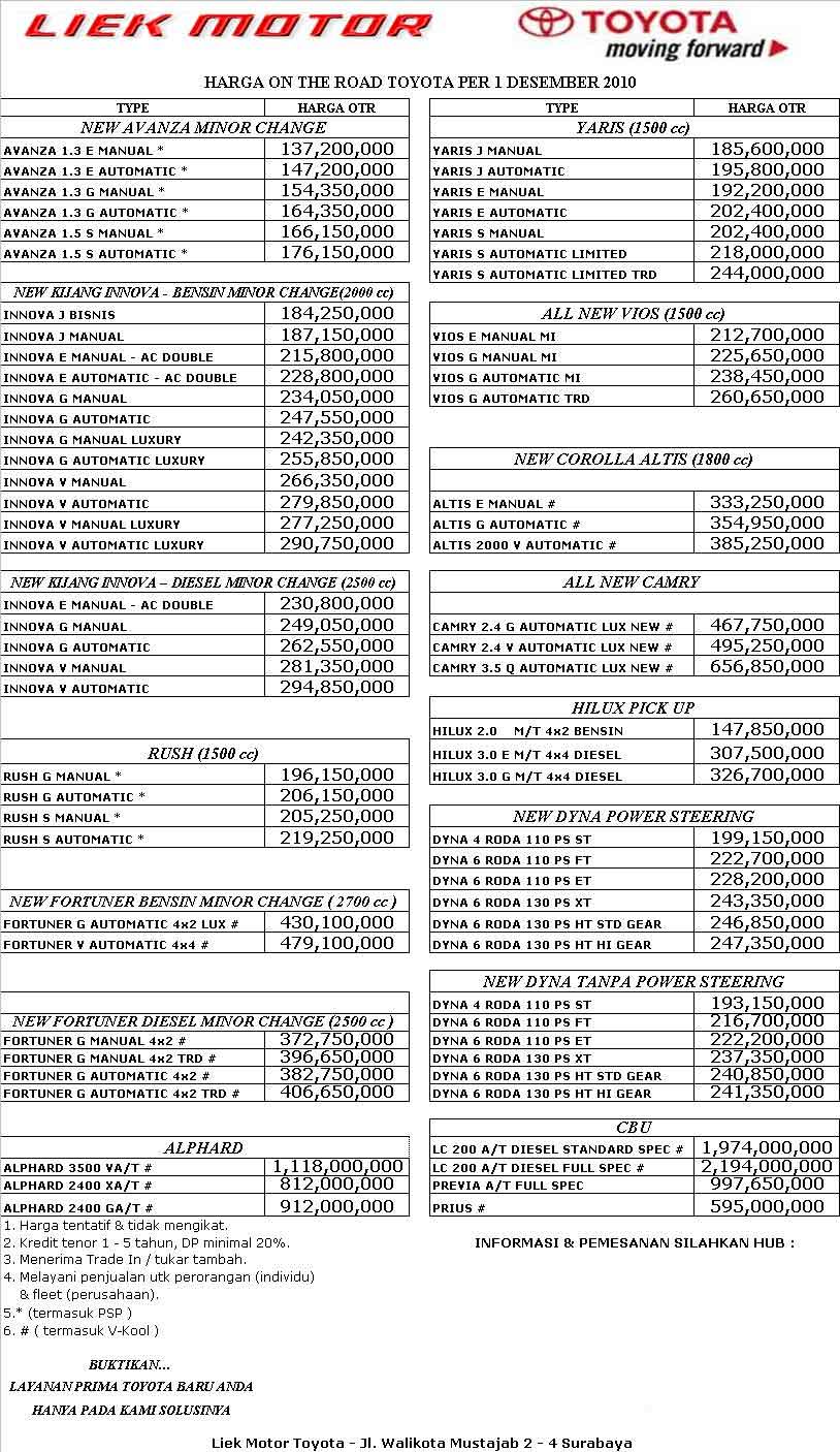 Karena harga mobil baru secara perlahan mulai bergerak naik. Dunia barusa toyota aceh dealer resmi mobil toyota terbesar di lhokseumawe aceh. Cari penawaran terbaik untuk mobil bekas di aceh. Harga toyota avanza di banda aceh mulai dari rp 187,6 juta untuk varian paling bawah 1.3 e std mt, sementara varian tertinggi 1.3g at dihargai rp 233,15 juta. Mobil toyota avanza g di kota kab aceh tamiang dengan harga bagus, atas nama sendiri, kondisi mulus di indonesia halaman4.
